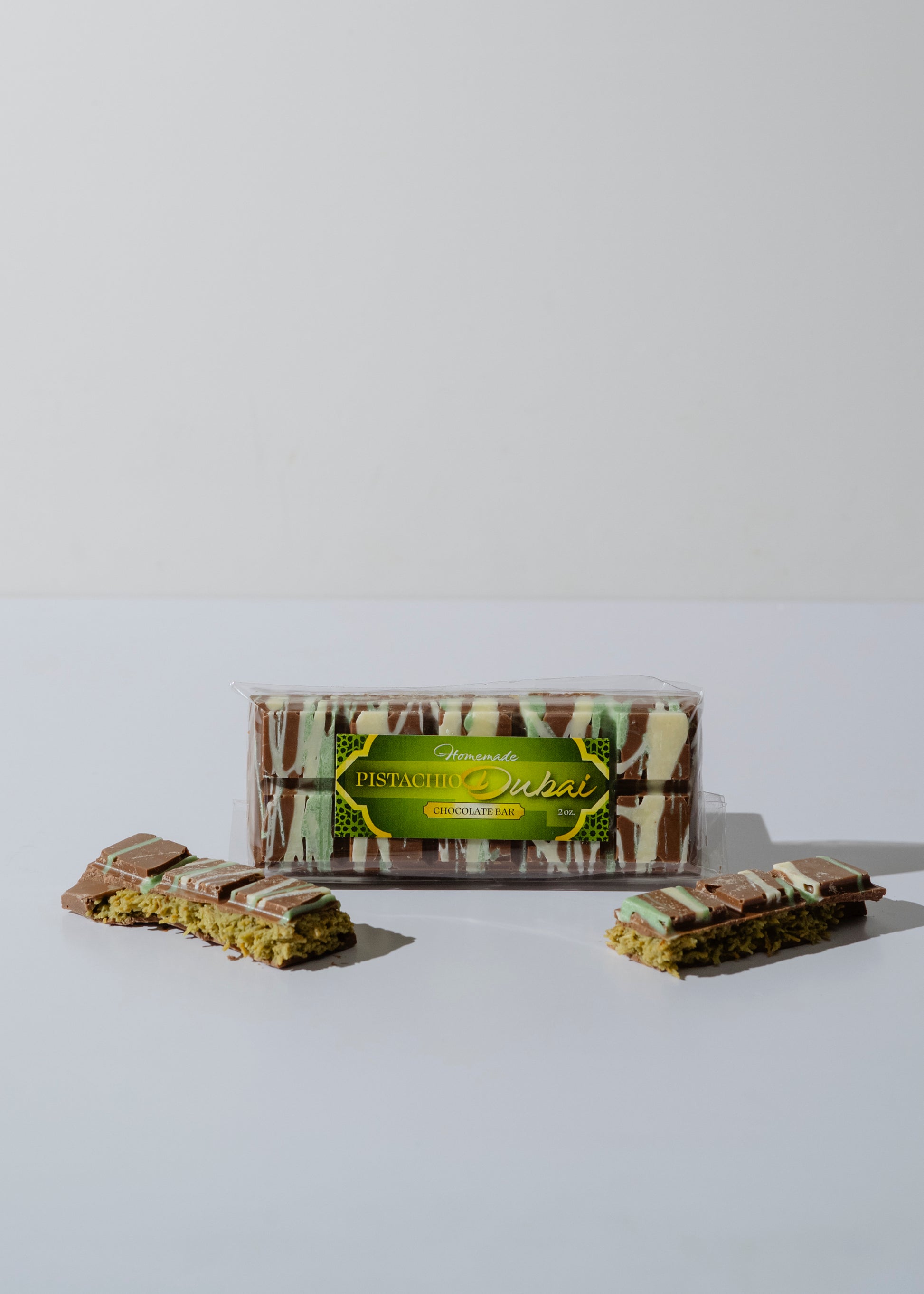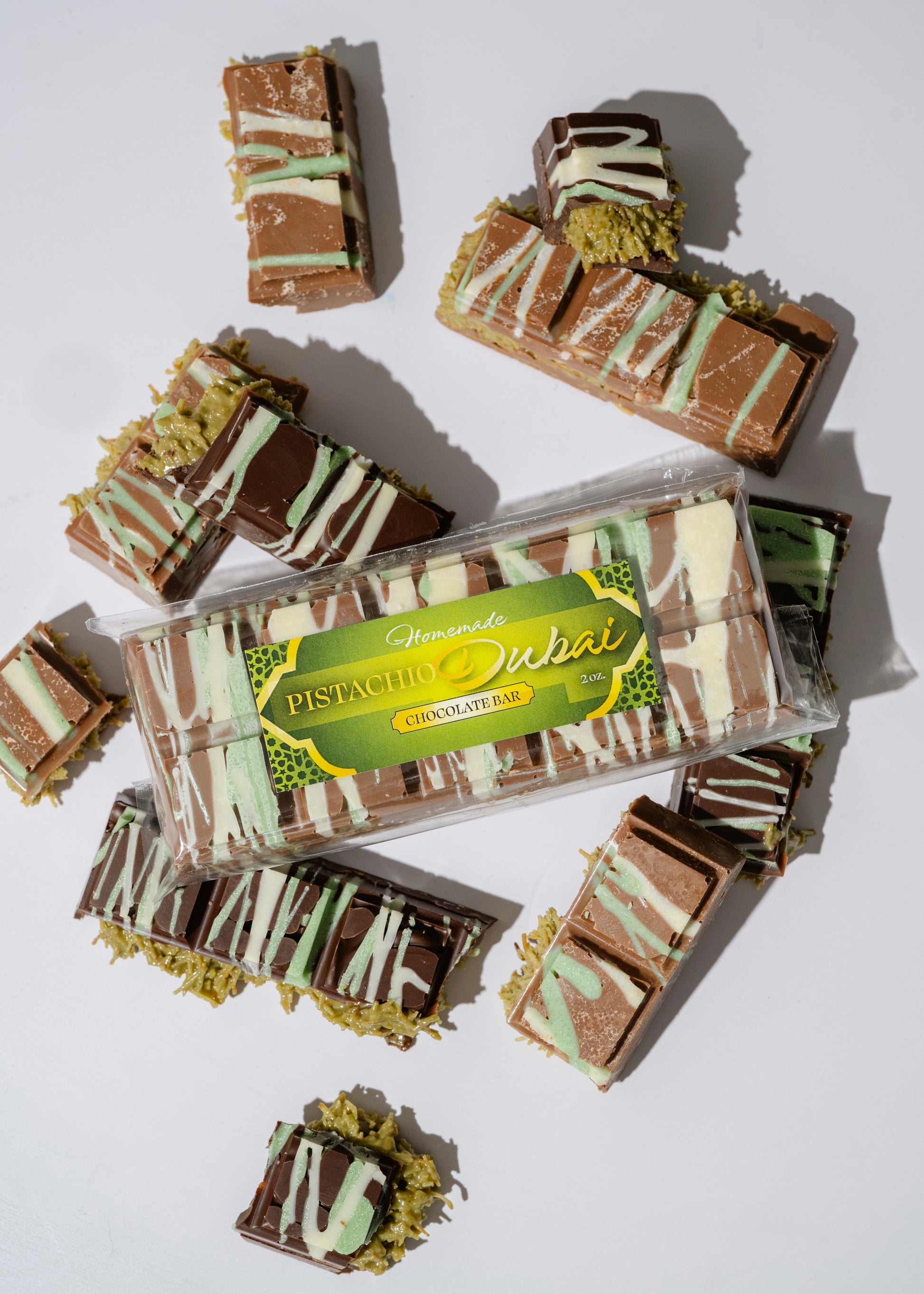 The viral Dubai Chocolate bar is packed with Pistachio cream and Knafeh which is a crispy, shredded phyllo pastry. Made with Belgium chocolate, it’s sweet and smooth but the real star is the pistachio-knafeh filling that is crispy, nutty and decadent. Once you take a bite you will know why the Dubai bar has gone viral!