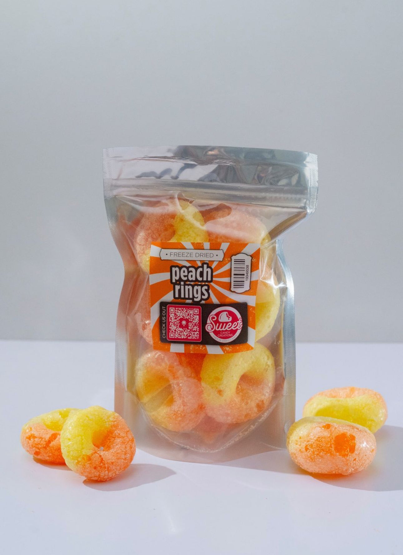Freeze-dried peach rings are a delightful twist on the classic gummy candy. These iconic treats undergo a unique freeze-drying process, resulting in a crispy and airy texture that intensifies the naturally sweet and tangy peach flavor. Each ring offers a satisfying crunch and bursts with the essence of ripe peaches, making it a convenient and portable way to enjoy this fruity delight. Freeze-dried peach rings provide all the taste and none of the stickiness, making them a perfect snack for those who appreciate the refreshing taste of peaches in a new and exciting form.