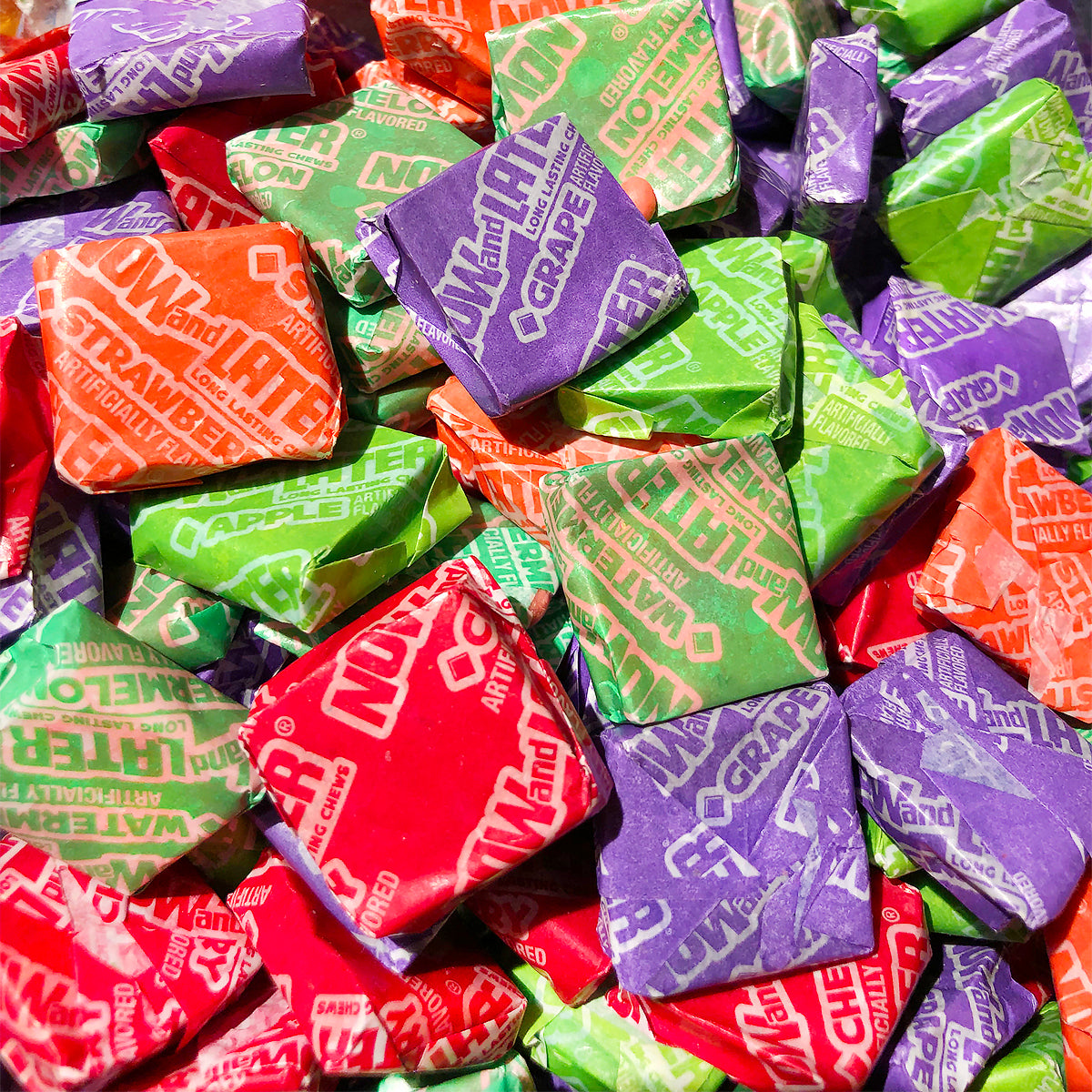 “Eat some now, save some for later!” That can be a challenge, because the delicious long-lasting fruity flavors—Apple, Cherry, Grape, Strawberry, and Watermelon—can make it hard to stop. These brightly wrapped taffies have been a big favorite since 1962. Country of Origin: USA