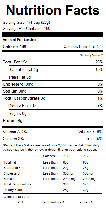 Ingredients: Shelled Pumpkin Seeds, Canola Oil. May contain traces of peanuts.