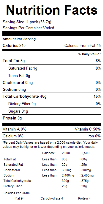 Ingredients: Corn syrup, sugar, partially hydrogenated soybean oil, fruit juice from concentrate (cherry, orange, strawberry, lemon), citric acid, dextrin, gelatin, food starch- modified, natural and artificial flavors, ascorbic acid, coloring (red 40, yellow 5, blue 1).